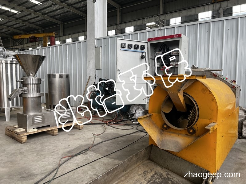 花生米脫膜衣——花生米炒制——花生米粗磨——花生醬細(xì)磨——花生醬均質(zhì)——花生醬泵進(jìn)料——花生醬熱榨