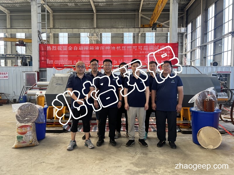 熱烈祝賀兆格環(huán)保自主研發(fā)的YZYW全自動液壓榨油機(jī)壓榨花生醬試機(jī)成功。