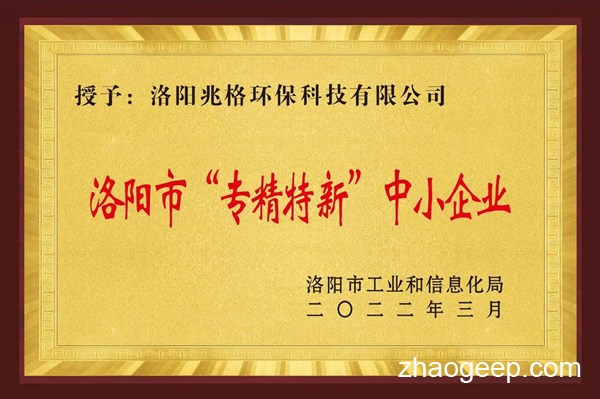 2022年3月獲得洛陽市工業(yè)和信息化局“洛陽市專精特新中小企業(yè)”認定